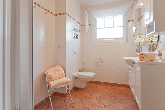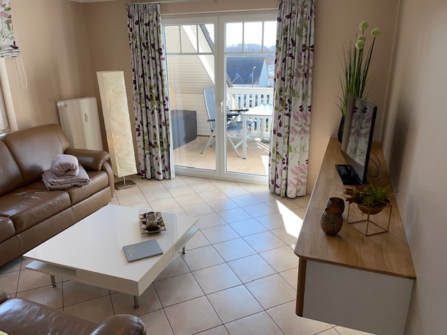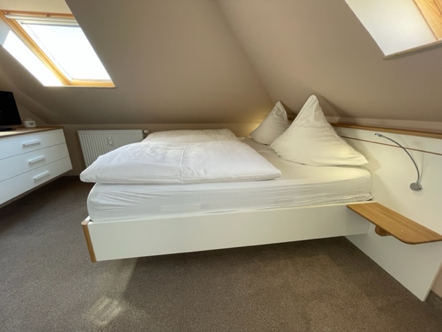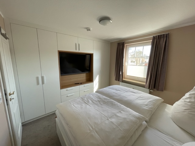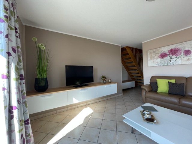 Im unteren Teil der Wohnung befinden sich die Küche, das Wohnzimmer, ein großes Schlafzimmer sowie das Bad. Im Obergeschoss befinden sich ein weiteres Wannebad und das Kinderzimmer, welches auch als zweiter, abgetrennter Schlafraum genutzt werden kann. Somit ist ein gemeinsamer Urlaub von zwei Familien auch kein Problem.